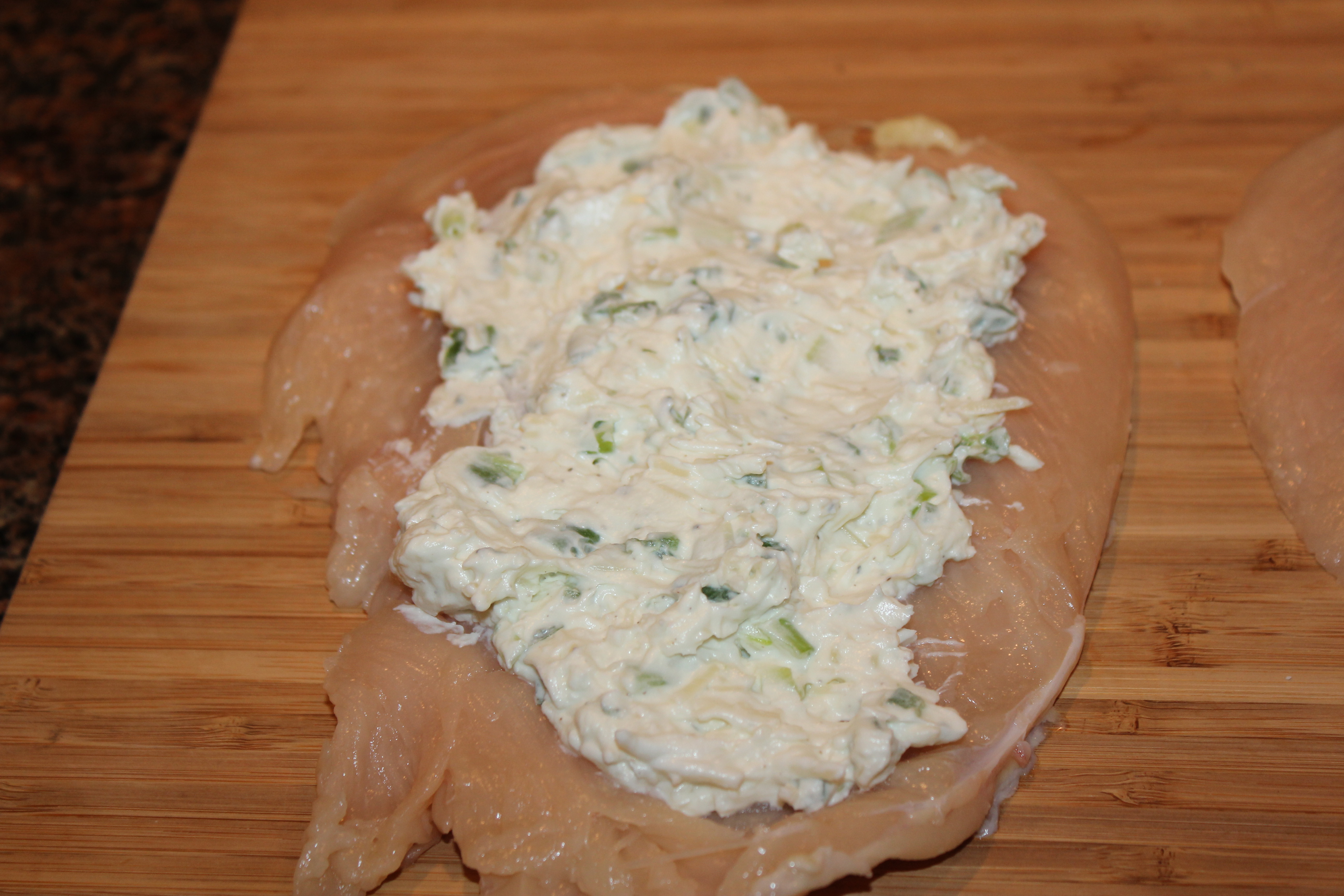 Spread about 2 tablespoons or so of the Boursin filling on each chicken, leaving about ¼ inch border around the edges.