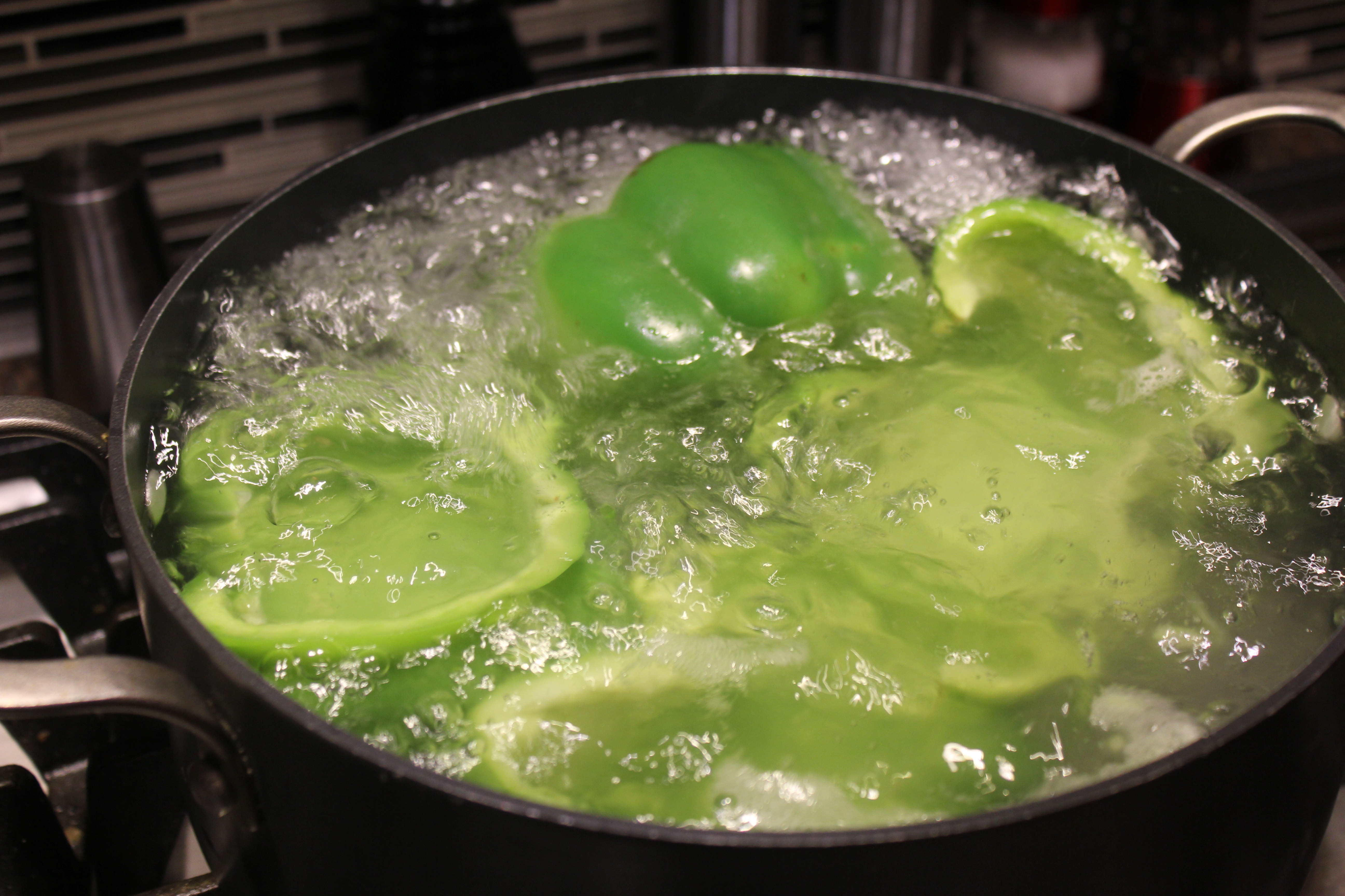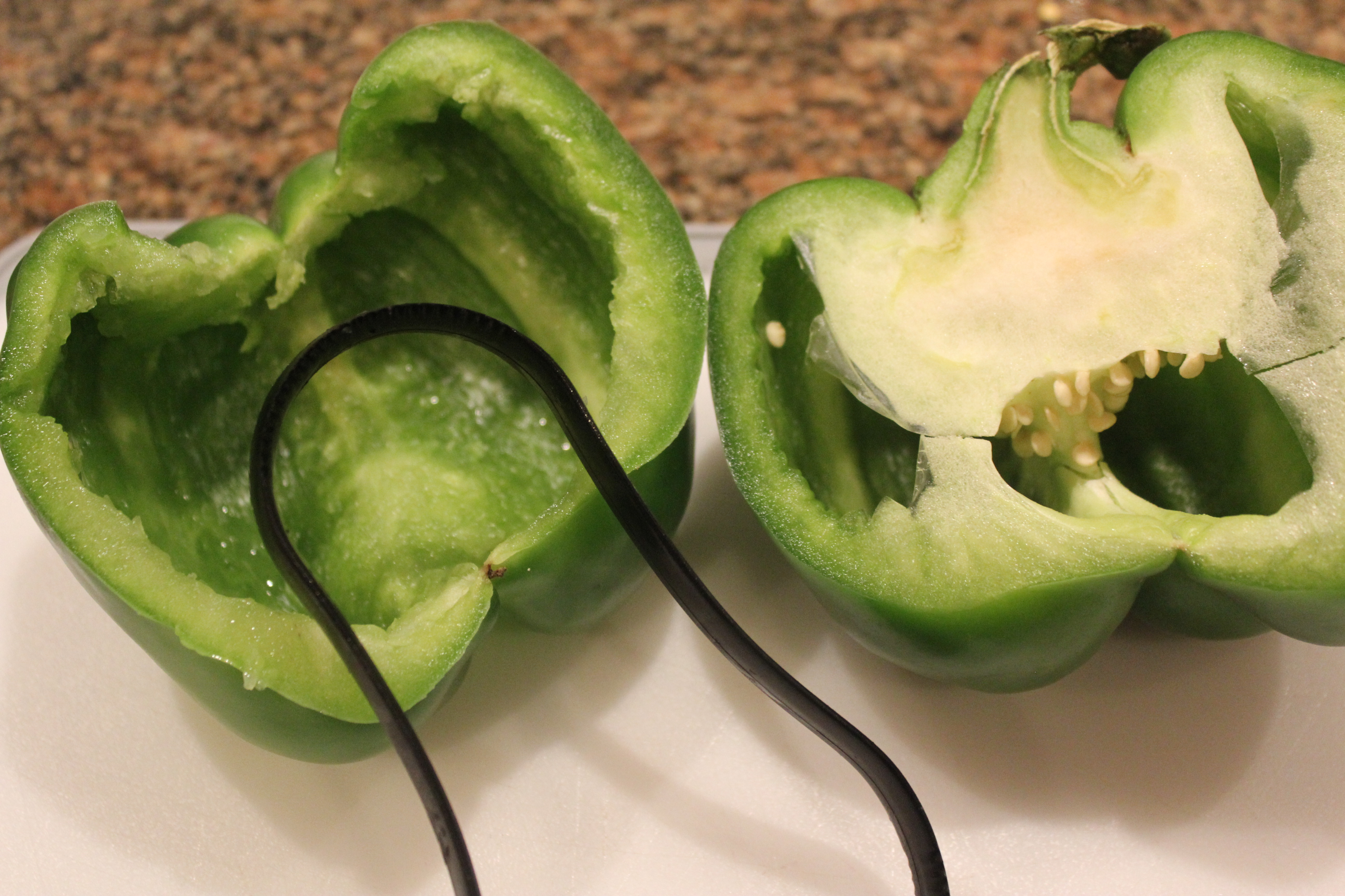 Slice your peppers in half, lengthwise, and remove the seeds and membranes (love my Pampered Chef Scoop Loop for this, and it’s only $5.50!)
