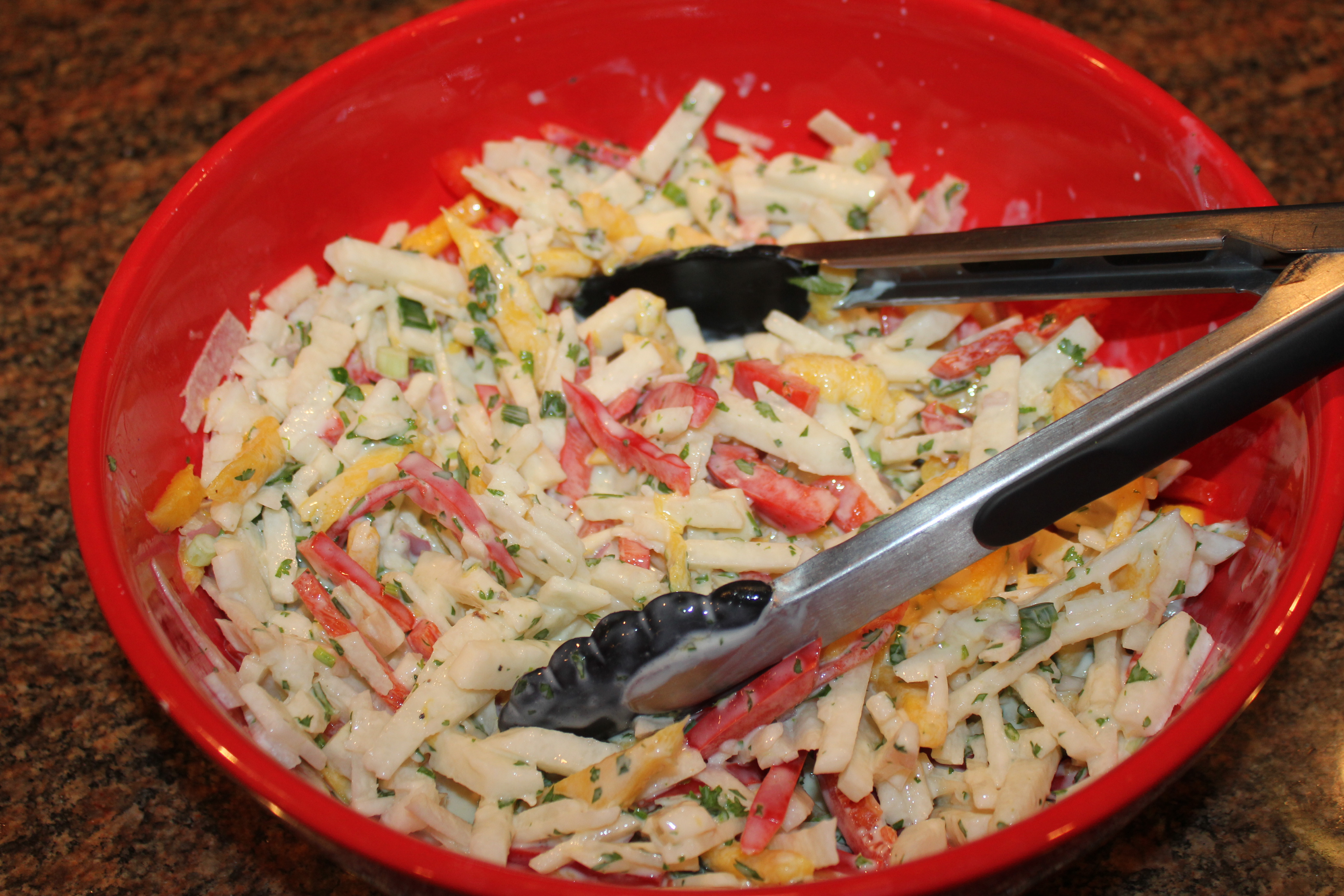 *Grated jicama should be drained of excess liquid before using in the salad.