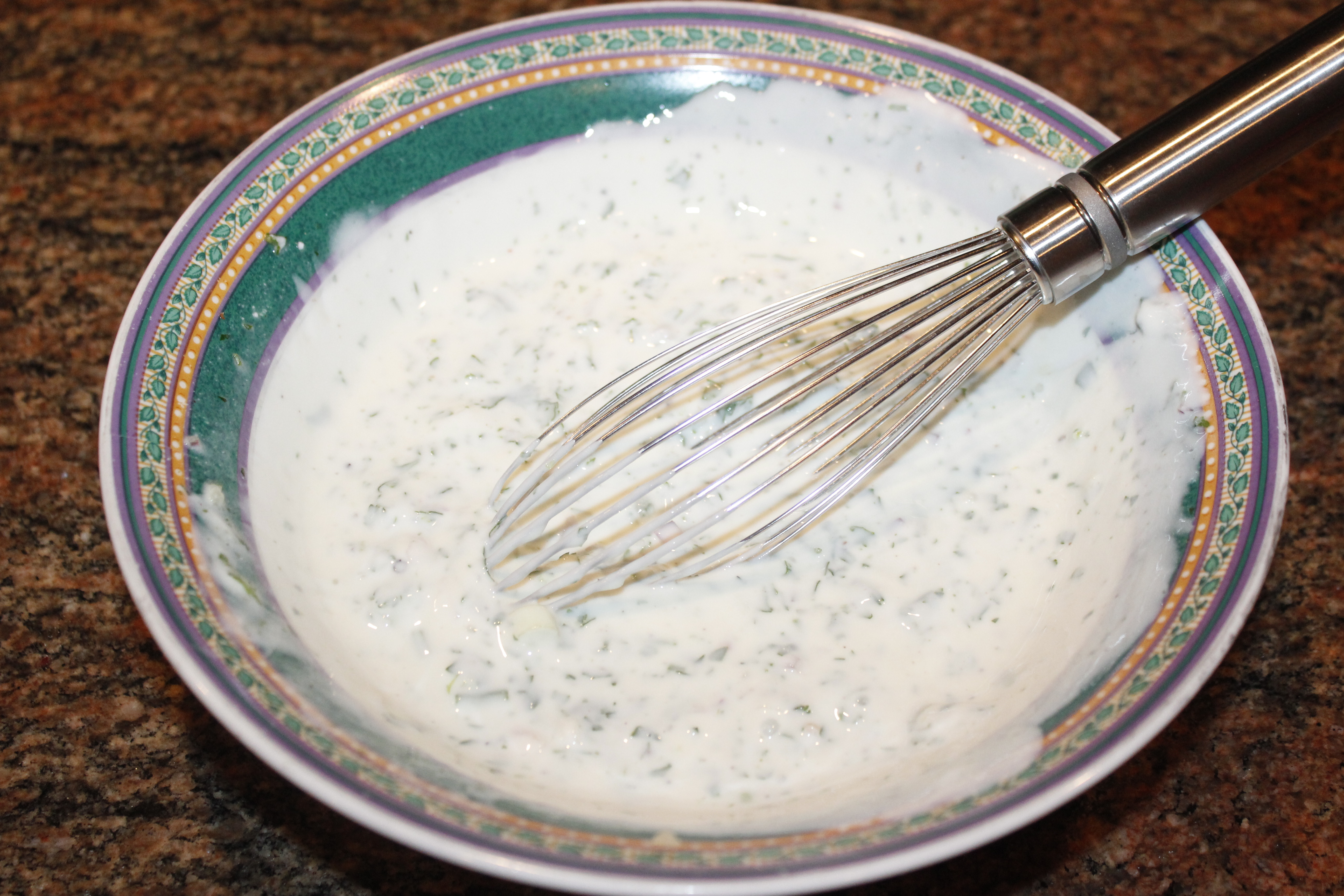 In a separate bowl whisk the dressing ingredients. Season to taste with salt and pepper.
