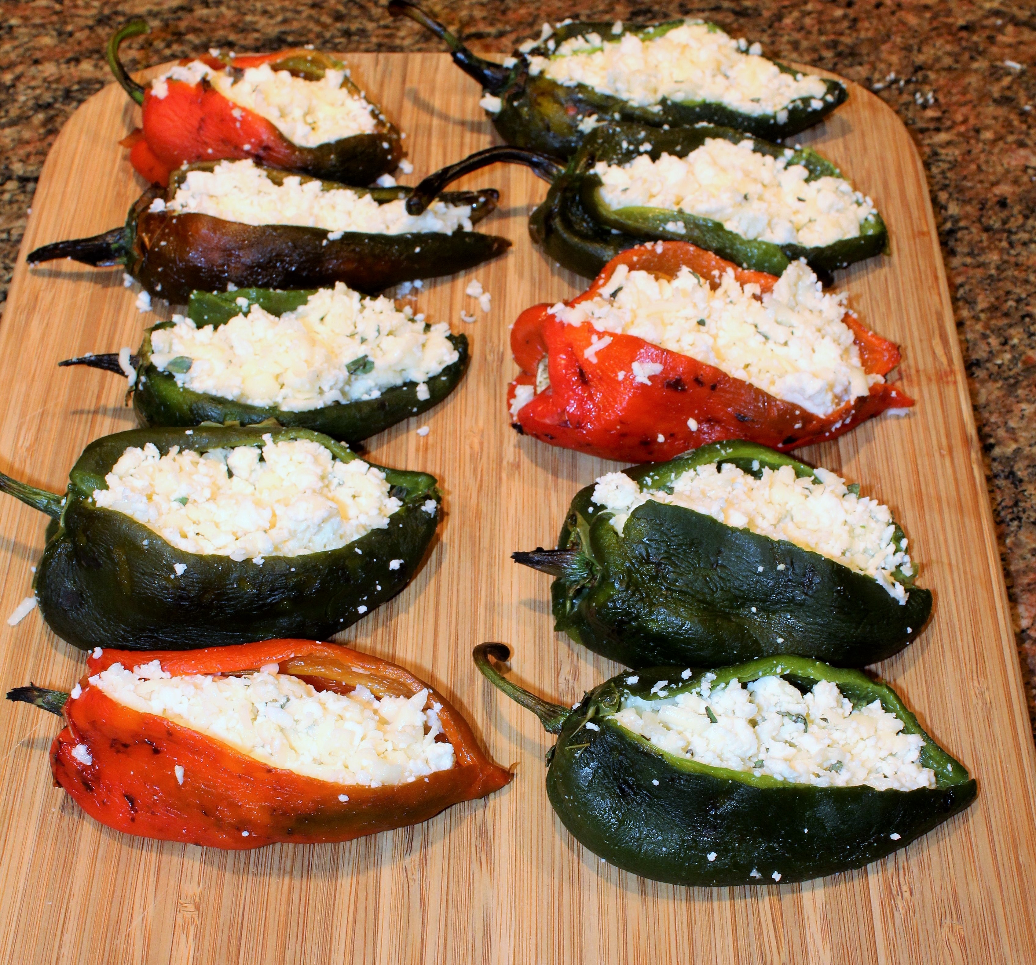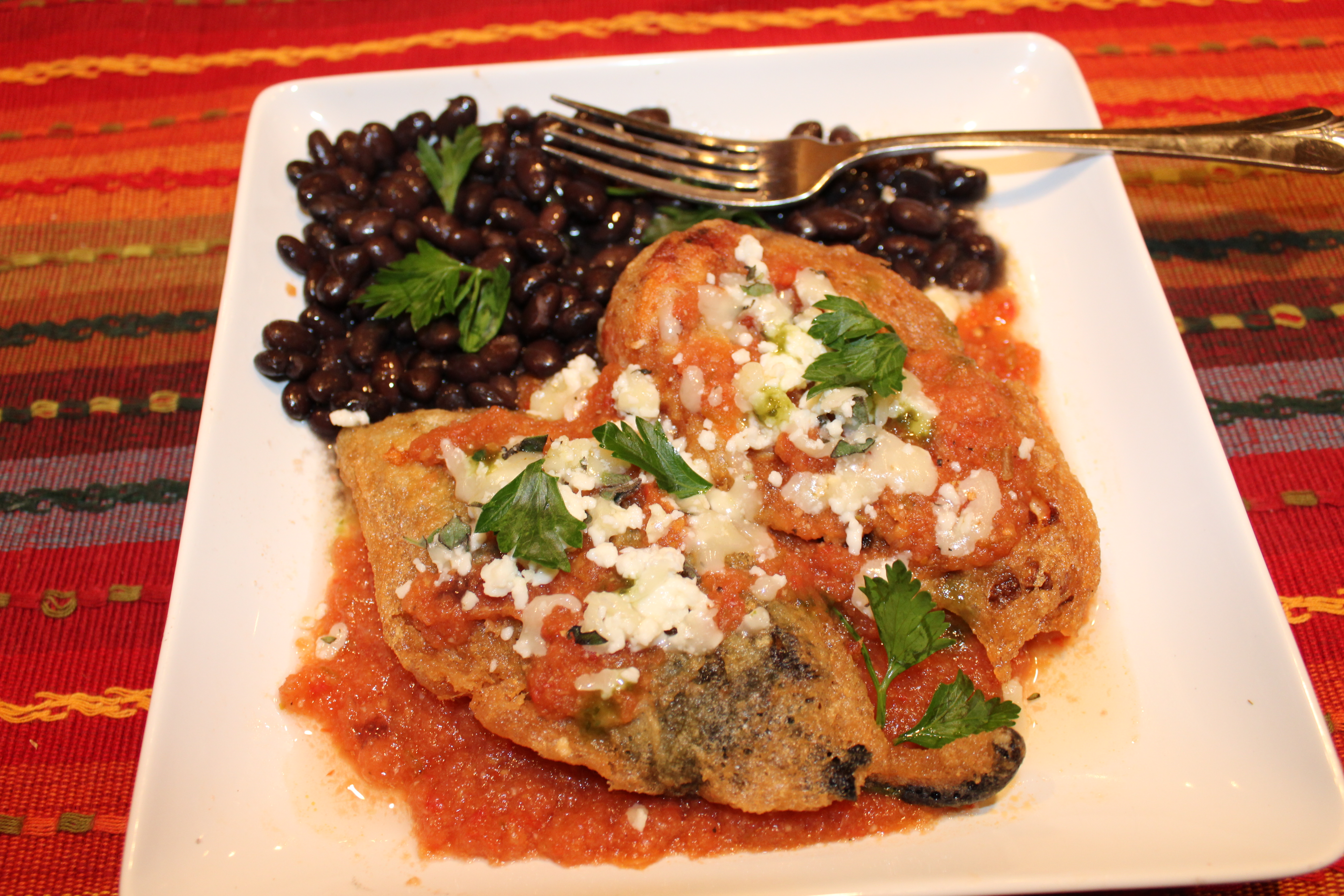 When we go out for Mexican food, one of my favorite meatless entrees to order is chile rellenos. I love the mildness of the poblano peppers and usually get them at the Farmer’s Market because they are usually fresher and less expensive than those from the grocery store. I like to fill these chiles with some a combination of queso fresco and monterey jack cheese, but pepperjack would also be a great choice for a little extra kick.