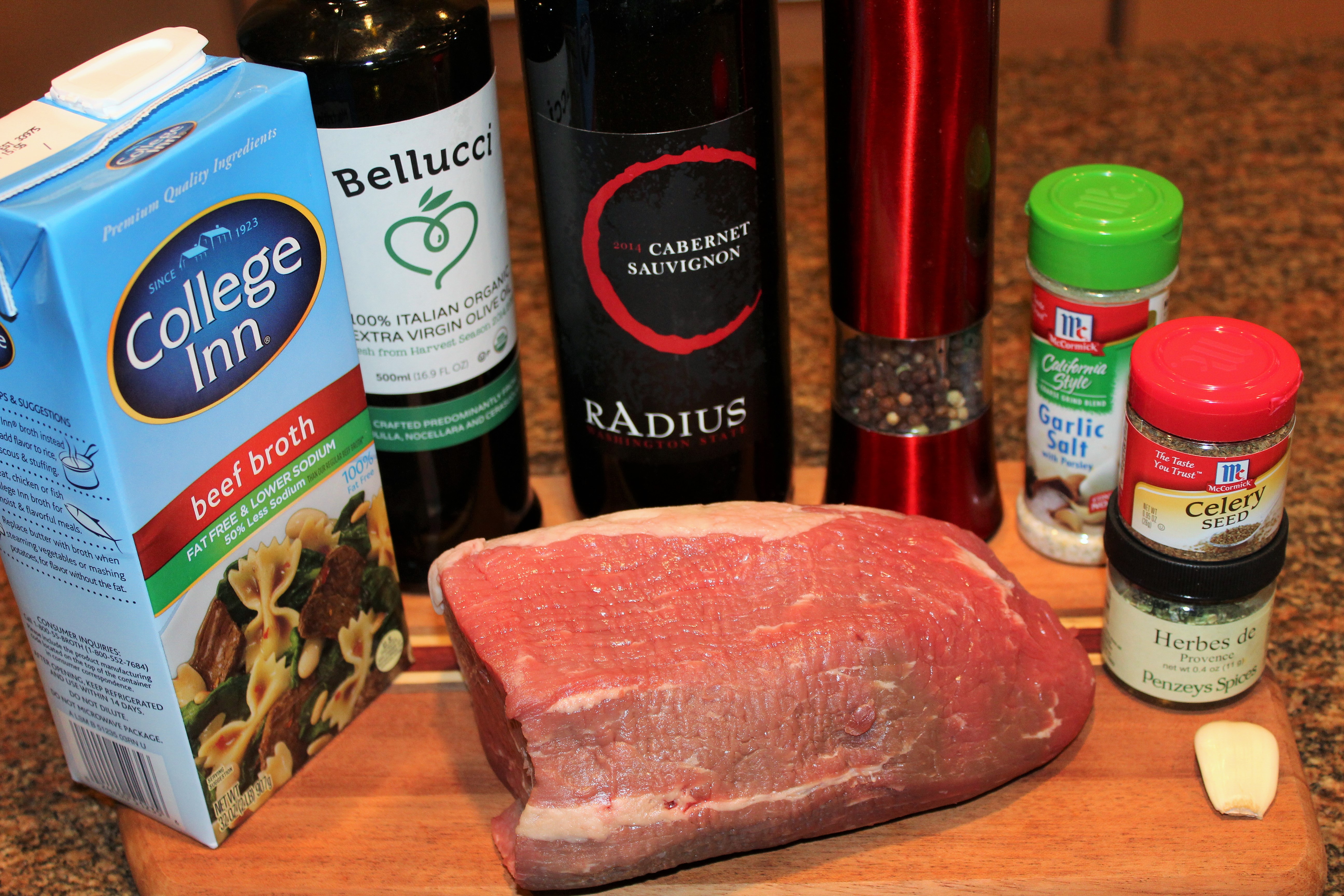 One of my favorite meals that Mom makes is a tender and tasty eye round roast. She coats the meat with garlic salt, pepper and celery seed, which gives it a wonderful and flavorful crust. So when eye rounds when on sale the other day, I knew what we’d be having for dinner later that week. I decided to make a simple au jus with the pan drippings, wine and beef broth, perfect for pouring over the meat and the accompanying mashed potatoes.