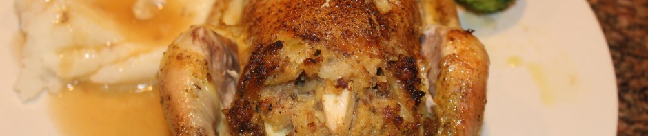 You can now stuff your bird with this savory stuffing. This is great in Cornish hens, pictured here.