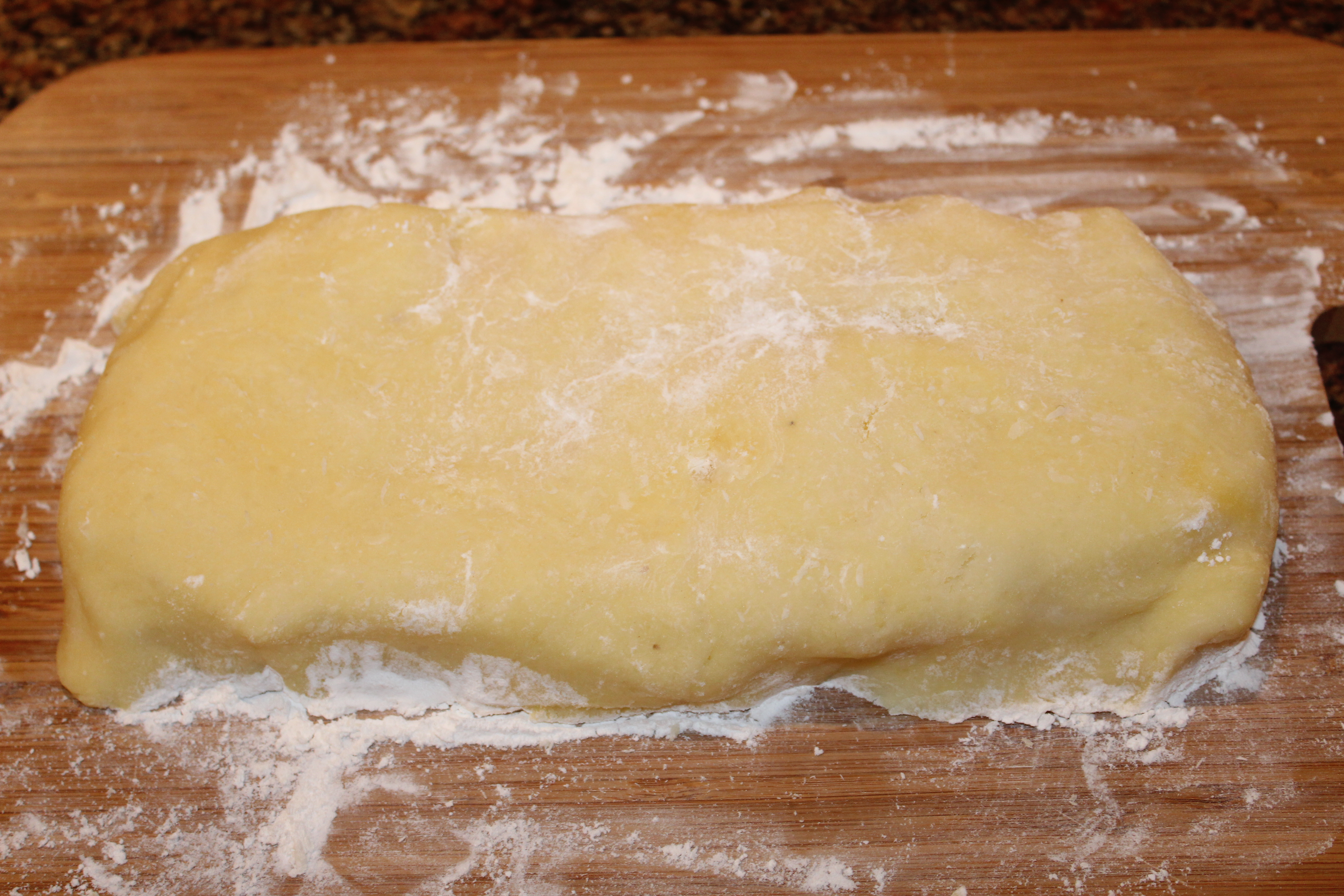 Sprinkle the remaining ¼ cup flour on top of the potato dough. Continue to gently fold and press, just until a uniform dough comes together. Lightly dust with flour.